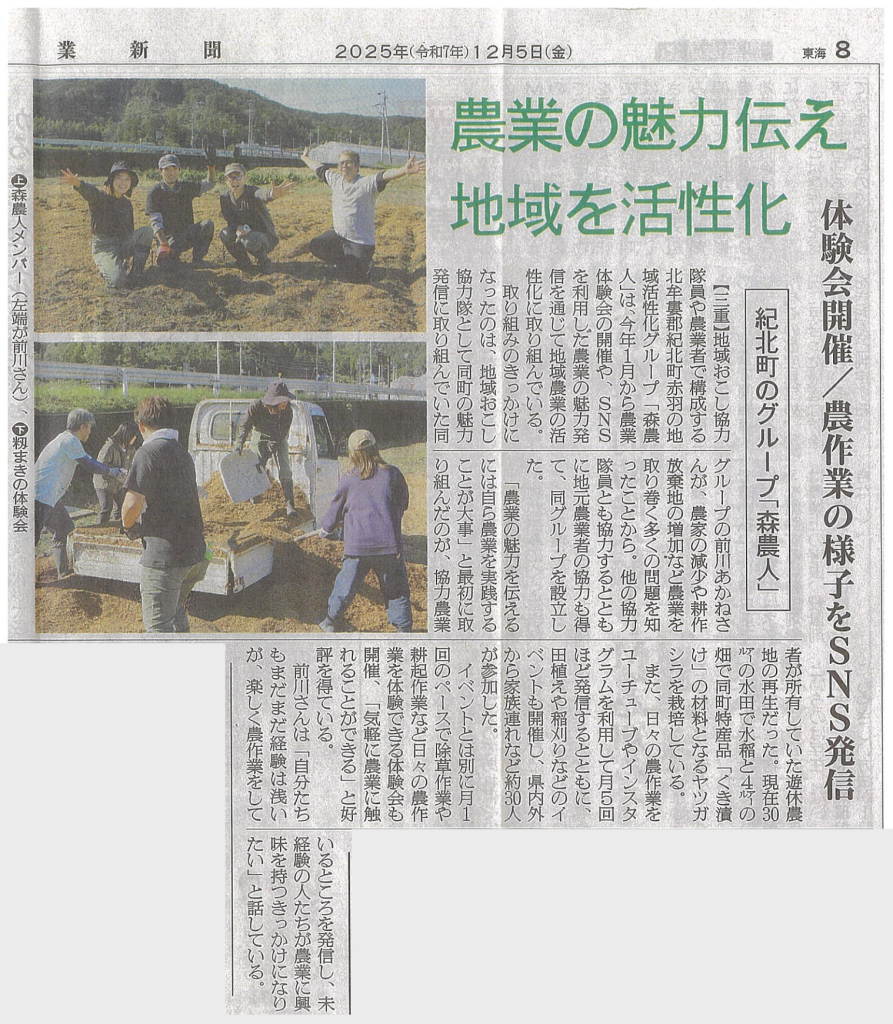 12月5日の全国農業新聞に載りました!